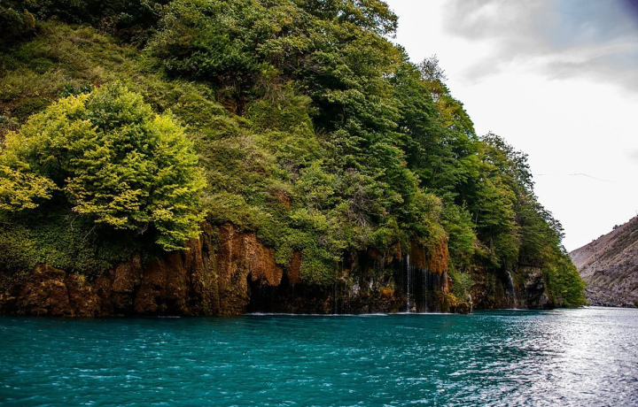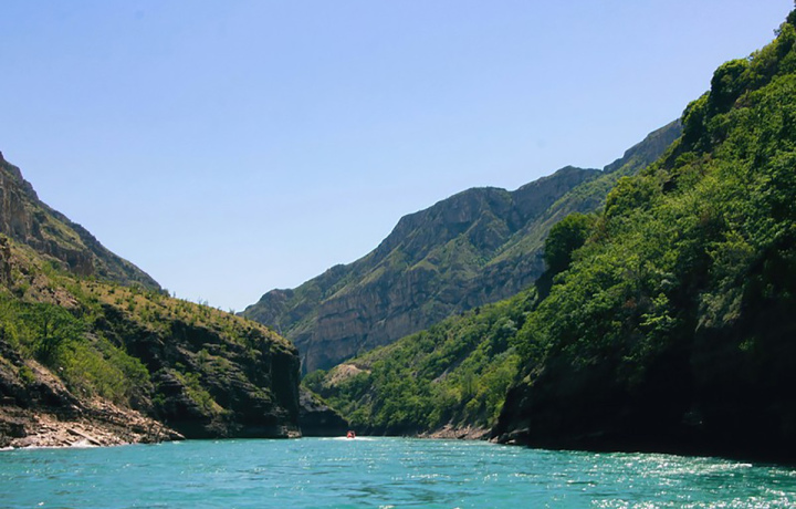 После того, как полюбуемся на красоту каньона сверху, вас ждет невероятное водное приключение — прогулка на катере по Чиркейскому водохранилищу.