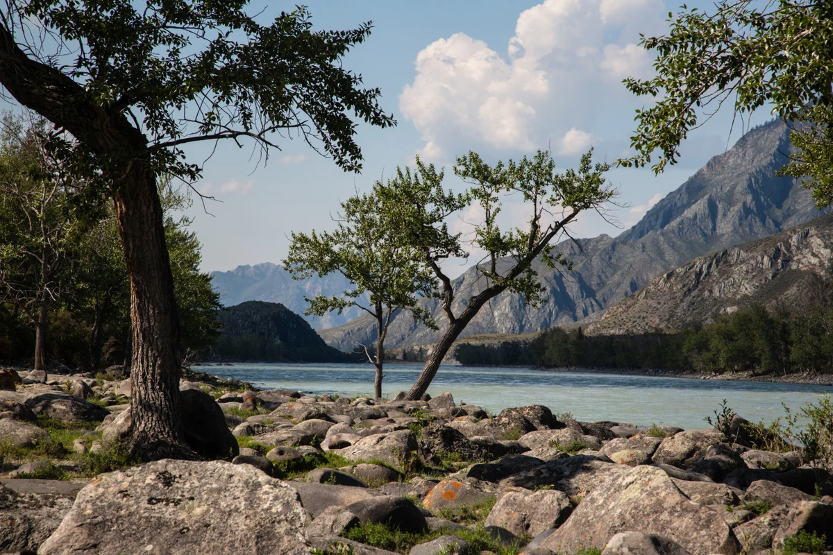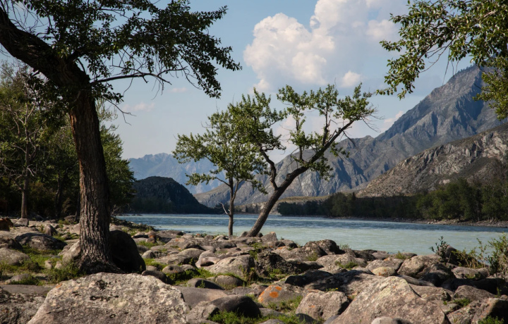 Сначала поедем на машине, а потом — на выш выбор: на моторной лодке по Катуни или пешком по лесной тропе. Первый вариант — с брызгами воды и видом на бурную реку. Второй — спокойная прогулка среди кедров, гор и алтайской тишины.