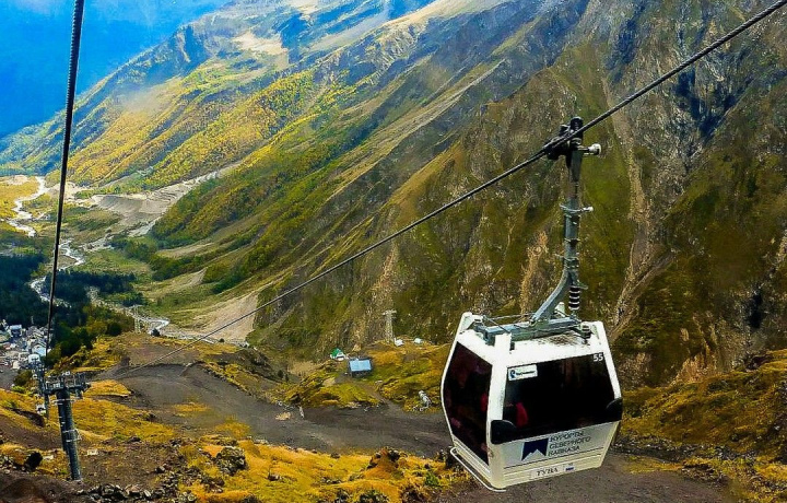 Мы с вами отправимся на свидание с могучим красавцем Эльбрусом — проедем вдоль завораживающего Баксанского ущелья к селению Азау, доберемся до курорта «Приэльбрусье». Преодолеем отметку в 3500 метров над уровнем моря, поднявшись в горы на канатной дороге, а после посетим Поляну Нарзанов.