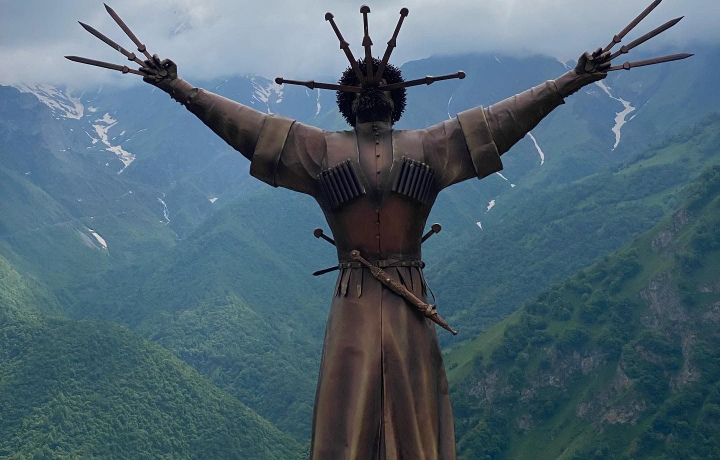 Финальным аккордом нашей экскурсии станет памятник Святому Георгию Победоносцу, будто бы исходящий из скалы. В Осетии его почитают как Уастырджи — покровителя воинов и путешественников. Каждое важное событие начинается здесь с молитвы этому святому.