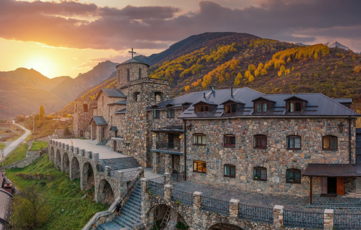 В завершение мы отправимся в Куртатинское ущелье, где вблизи посёлка Верхний Фиагдон вы посетите знаковый монастырь. Основан он не так давно, в 2000 году. Но интересен тем, что является самым высокогорным и южным православным монастырём в стране. А ещё он весьма живописен, ведь со всех сторон окружён горами.