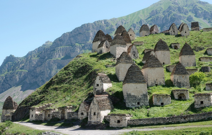 Крупнейший некрополь Кавказа стоит на склонах Даргавского ущелья вот уже семьсот лет. Издалека место похоже на поселение с домами — но на деле это комплекс древних склепов, где захоронены тысячи человек.