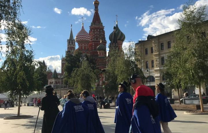 Недавно меня пригласили на необычную прогулку. Точнее, начало было вполне обыкновенным: нужно было к назначенному времени явиться на Кузнецкий мост. А потом нам выдали синие мантии, и мы отправились на поиски таинственного Клокуокера... Вот так темным московским вечером я оказался на улице в синем плаще в окружении таких же странных людей. Нам выдали наушники, в которых вкрадчивый женский голос поведал трогательную историю маленького Клокуокера, который сбежал из дома, шарил по карманам, вел антисоциальный образ жизни, но однажды встретился с неким существом, и... А впрочем, не буду спойлерить. В общем, из полутьмы переулка за Большим театром появилась высокая фигура в темных очках, в цилиндре и с тростью. Это и был наш милый Клокуокер, и дальше рассказ в наушниках велся от его имени. Думал ли я, что по маленькому пятачку от Кузнецкого до Красной площади можно блуждать два часа? Догадывался. Но в компании Клокуокера это было не только не скучно, но и весьма интересно. Не буду пересказывать маршрут, чтобы не испортить интригу, если вы вдруг соберетесь на эту экскурсию. *Формат иммерсивной экскурсии удобен тем, что участвующие в прогулке не должны толпиться, пытаясь уловить слова гида: все слышно в наушниках, вы можете замедляться или ускоряться, главное, не терять группу из виду. И тут, кстати, здорово выручают те самые синие плащи: в толпе их видно издалека.