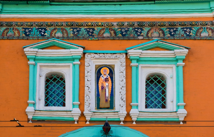 Московское зодчество по праву гордится своим изразцовым убранством, в чём мы убедимся и на последней точке нашего маршрута, в старинном Андреевском монастыре. Надвратный храм во имя святого мученика Андрея Стратилата украшает ещё одно творение Степана Полубеса.