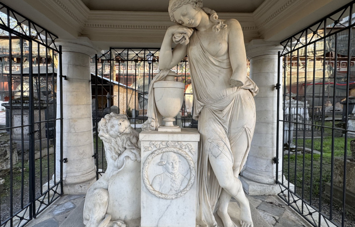 • Взглянем на могилу того, кто похоронен у ног девушки, любившей его безответно.