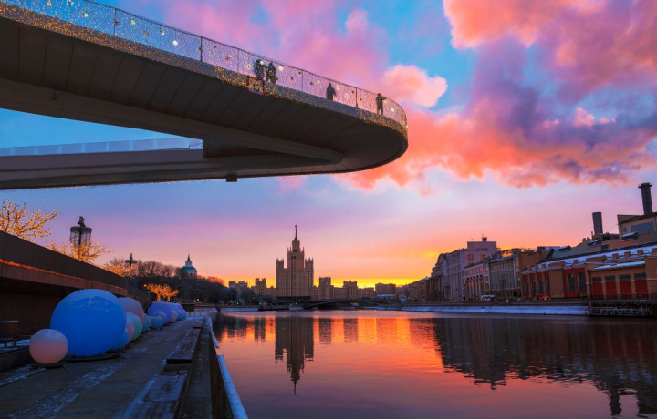 Москва вечером великолепна. Обслуживание хорошее. Долго стояли в очереди на посадку, остальное здорово прошло