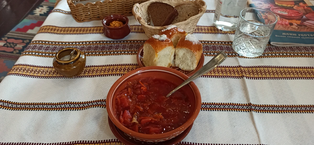 Мы сегодня побывали на экскурсии нестандартного формата. На улице было очень холодно, а нам тепло и уютно, потому что экскурсия проходила в ....ресторане и ....чебуречной. Гид Дмитрий увлекательно рассказал нам об истории и блюдах русской кухни. При этом мы с удовольствием дегустировали некоторые блюда. Дмитрий был внимательным к каждому участнику, эрудированно отвечал на наши вопросы.