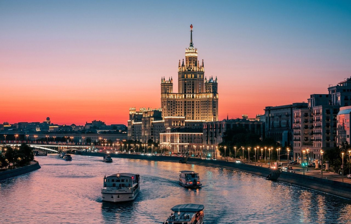 Мы прокатимся на речном трамвайчике и оценим городские панорамы. С воды вы увидите Бородинский и Новоарбатский мосты, здание Правительства РФ, рассмотрите сталинскую высотку — гостиницу «Рэдиссон Коллекшн Москва» — и узнаете об истории создания Москвы-Сити.