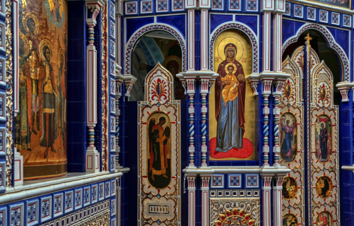 Вы увидите икону Спиридона Тримифунтского с частицей его башмака и чудотворные образы Божией Матери: Ахтырскую, Скоропослушницу, Иерусалимскую и Знамение. Здесь же хранится частица Древа Креста Господня.