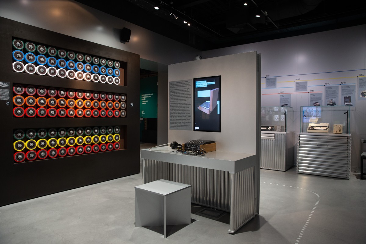 Экспозиция включает четыре раздела: от цифровой эпохи и компьютеров мы отправимся к эпохе индустриальной, когда были созданы радио, телефон, телевидение и телеграф. Затем — к эпохе домашинной криптографии и письмам. И, наконец, к протокриптографии — к зарождению идеи письменной коммуникации между людьми. Отдельный, пятый раздел, посвящён истории нашего здания и людям, чьи судьбы были с ним связаны.