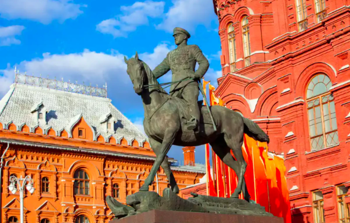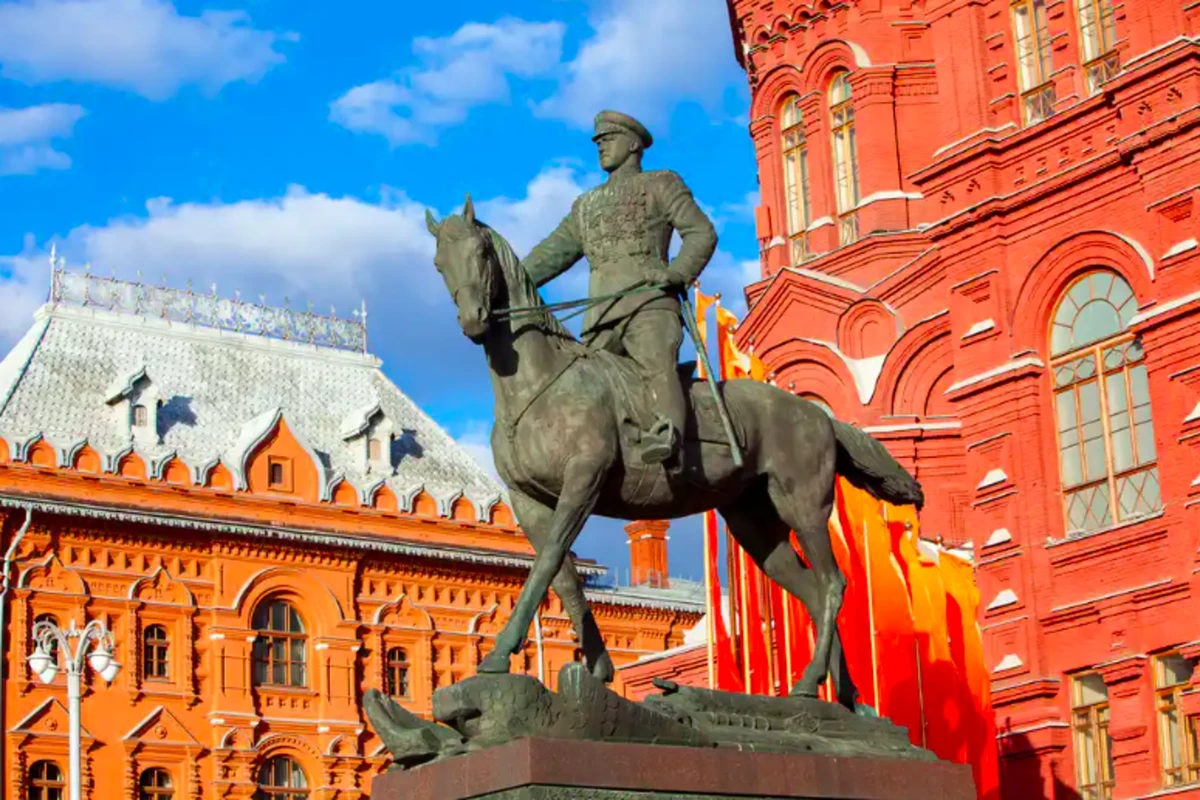 Памятник маршалу Жукову. Вы узнаете, чьё лицо у монумента.