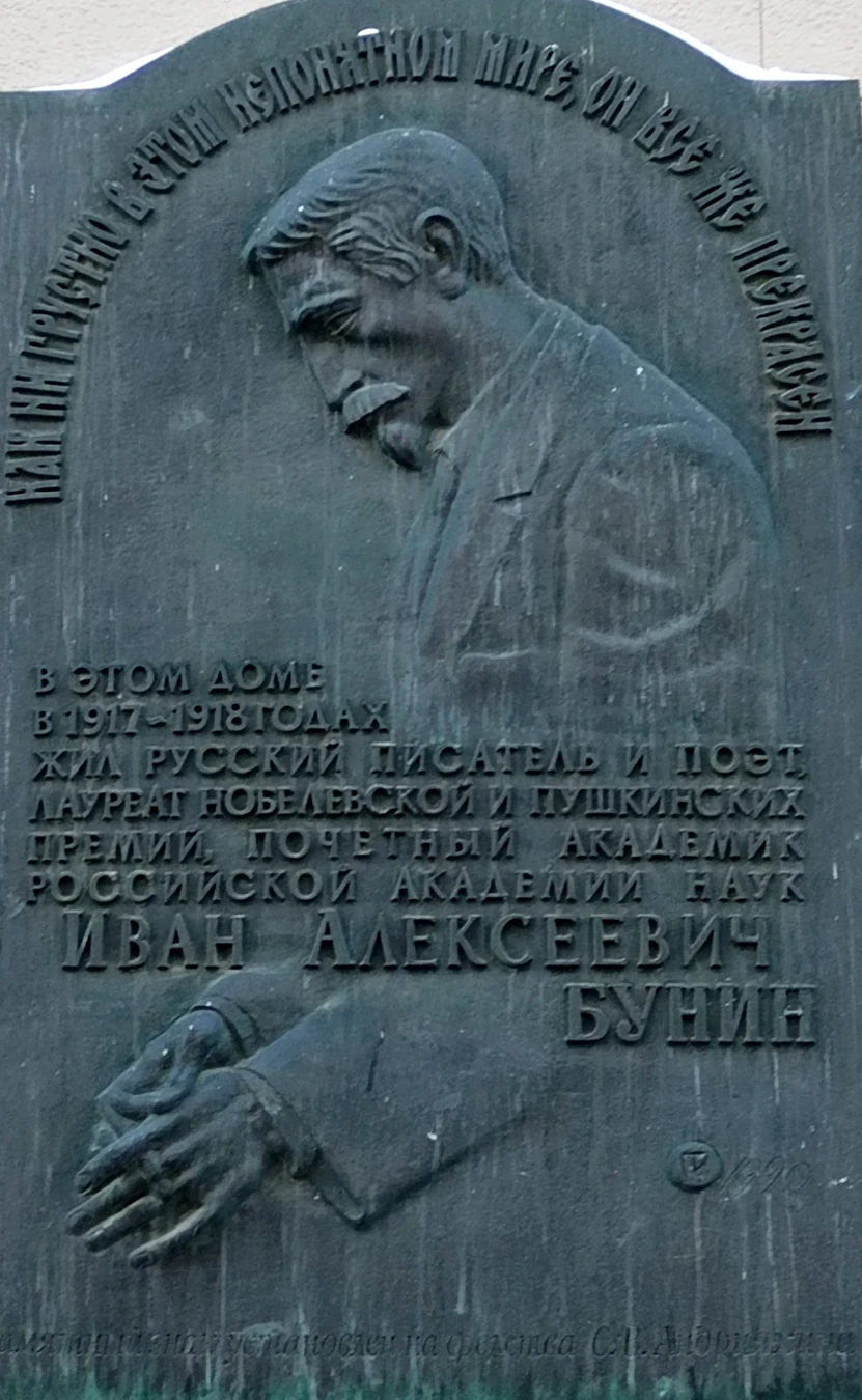 В районе Арбата собраны практически все места, где жил и бывал писатель. В Староконюшенном переулке вы осмотрите усадьбу, во флигеле которой Бунин снимал комнату (здесь же раньше стоял и другой дом, где жил классик). На Старом Арбате увидите гостиницу «Столица», где он останавливался, и знаменитый ресторан «Прагу», куда Бунин часто захаживал и где отмечал получение Пушкинской премии. А на Поварской улице, 26, ставшей последним адресом Ивана Алексеевича в Москве перед его эмиграцией во Францию, мы остановимся у его дома, и, если повезёт, заглянем внутрь, рассмотреть великолепную лепнину и на секунду представить, как писатель пересекает парадную.