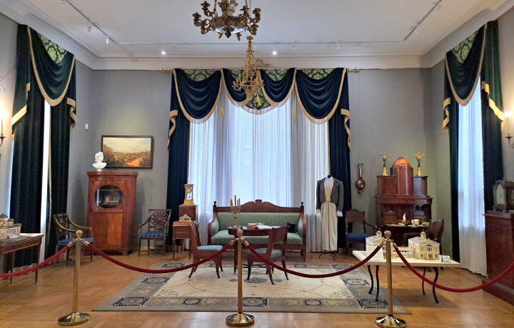 Вы полюбуетесь убранством парадных комнат и представите, какие балы здесь устраивал хозяин. Круглый зал с античными росписями, Мраморный зал для танцев, а также зал с колоннами — но больше всего гостей дворца удивляла театральная сцена с механическими машинами, которые воссоздают звуки дождя, грома и ветра.