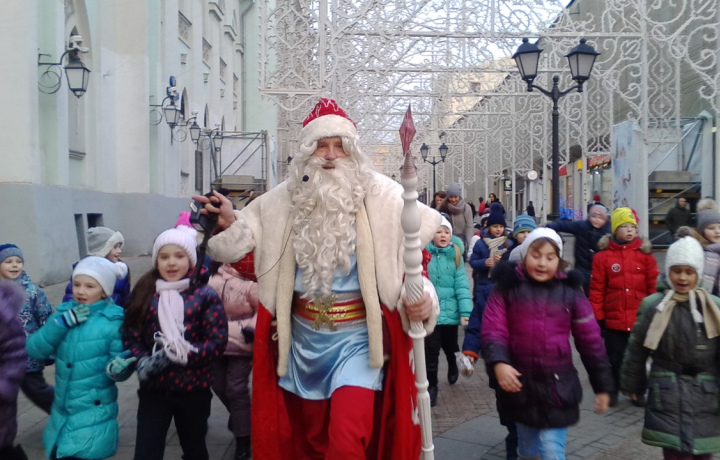 2 января решили устроить новогодний сюрприз для взрослых и детей. Сюрприз удался на 1000%. День был солнечный и вечер ясный с легким морозцем, Москва красивая, нарядная, праздничная. Неожиданное появление Деда Мороза в нашей пешей прогулке стало для всех большим сюрпризом! Дед Мороз, его можно описывать бесконечно!!!! Он был настоящий, из сказки детства - ОГРОМНЫЙ с добрыми лучистыми глазами, бархатным голосом и русской душой!!! Высокий рост, грамотно подобранный костюм -красивая красная шуба, валенки, большой мешок подарков. Ненавязчивое переплетение исторических фактов с элементами загадок, игры вызывали восторг у всех у нас взрослых, детей и просто прохожих) Мы все пели, танцевали, водили хороводы - было ощущение магии и волшебства) Юрий - человек праздник, замечательный эрудит, мы узнали много интересных фактов о Москве и не только. Два часа пролетели на одном дыхании, расставаться не хотелось…по дороге домой наши папы пели шарики-фонарики, мы с детьми танцевали) Юрий растопил наши сердца и вернул всех в детство на два часа. Наш Дед Мороз благодарим тебя от души за сказочный вечер, который мы все запомним на долгие лета.
