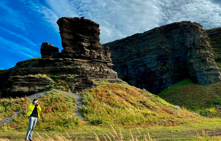 Нас высадили для "нагуливания аппетита" у Двух Братьев и мы гуляли, делали фото, искали ежей в бурых водорослях в отливе, дошли до пляжа Рыжих камней, где Валерия приготовила нам обед! Удобные стульчики, горячий борщ (нереальной вкусноты), чай и кофе и все под шуршание волн и с видом на природу❤️