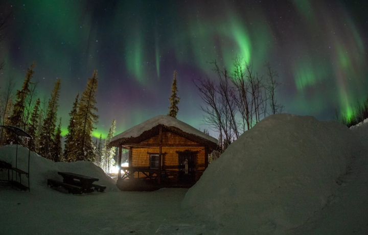 Мы посетили заброшенную школу, а на обратном пути остановились на трассе и дурачились в снегу в полнейший темноте, фотографируясь на фоне сияния, которое мы снова нашли благодаря опыту и знанию фишек и плюшек Александра!