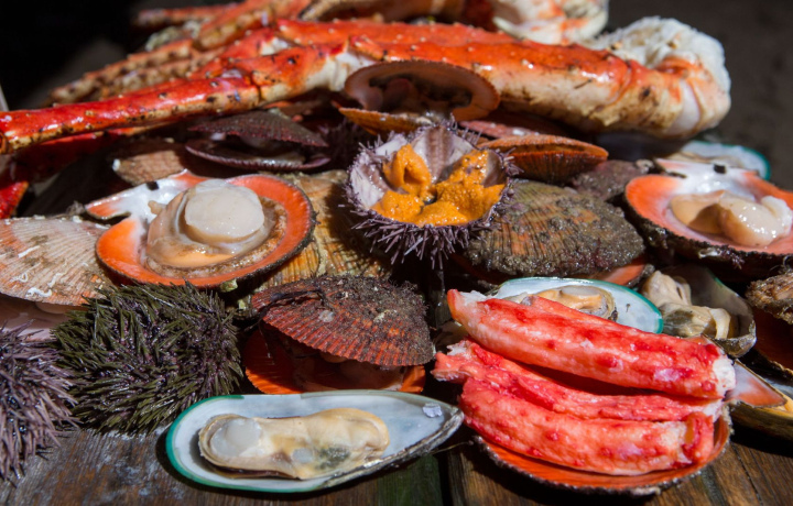 При желании, отведаем северные деликатесы (крабы, гребешки, морские ежи) в одном из комфортабельных ресторанов с видом на Териберскую бухту.