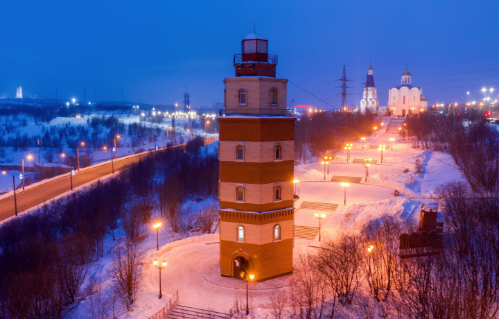 — Город на скалистых берегах — город был построен на восточном побережье Кольского залива, в зоне лесотундры на сопках, мы посетим смотровые площадки с потрясающим видом на неугасающий порт с его величественными кранами, на незамерзающий парящий залив.