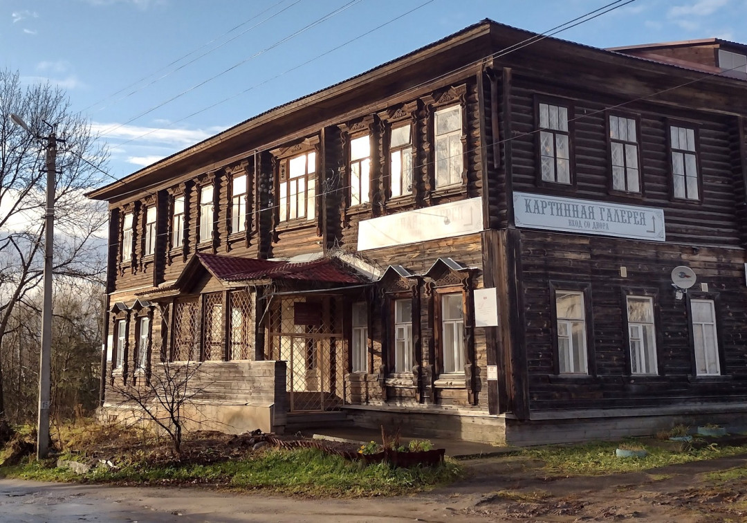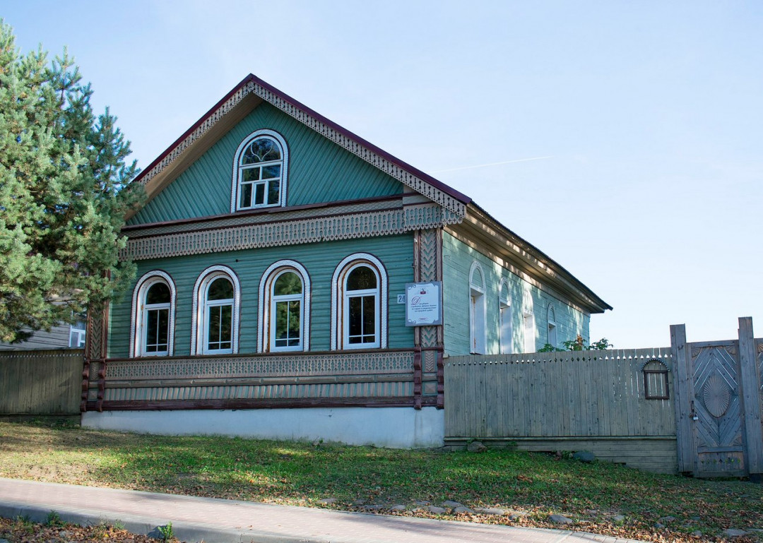 Большой деревянный дом на каменном фундаменте в XIX веке принадлежал купцу 2-й гильдии Свешникову, который занимался мануфактурой. Дом известен тем, что ещё до революции в нём провели электричество и пользовались лампочками. Об этом сообщает памятная табличка на фасаде. Под ней на небольшом стенде вы увидите старинные фотографии членов семьи Свешниковых.