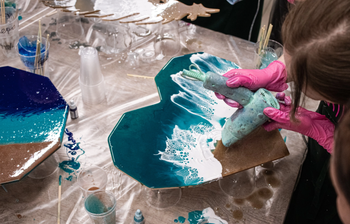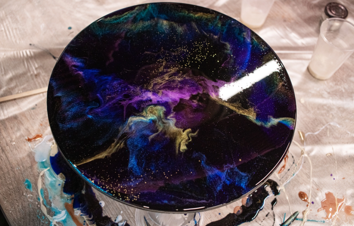 За 2,5 часа вы освоите работу с яркими пигментами, декоративными элементами и создадите арт-изделие в одной из популярных техник: «Срез камня», «Море» или «Космос». На выбор — более 130 основ разных форм и размеров: от часов и панно до подносов и листьев. Разбавьте свой вечер яркими красками и получите незабываемое удовольствие от процесса!