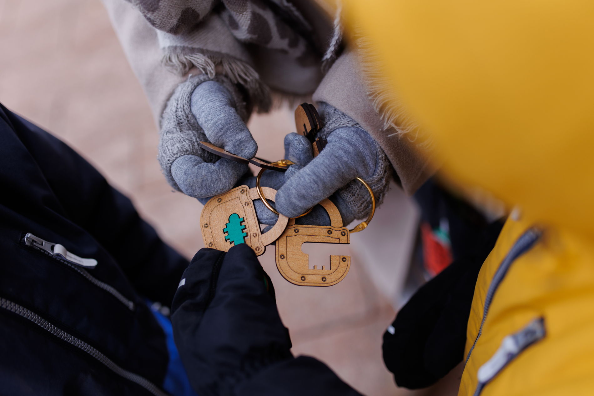 Участников квеста встретит ведущий — хранитель ключей от Древнего Кремля. Он поделится с участниками своей бедой — перепутались все ключи от замкОв кремля. Ведущий пригласит участников помочь ему собрать разноцветные ключи. Выполняя задания, ребята получают ключи и собирают их на единой связке с замками.