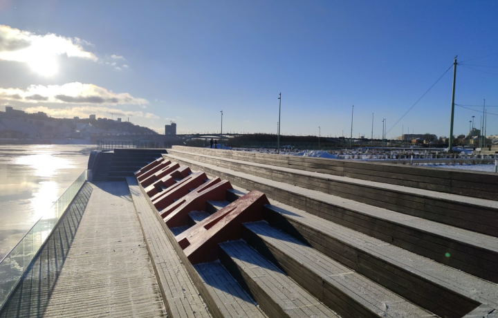 Зимой портовый район между двумя реками отличается суровым микроклиматом из-за влажности и ветра. Пожалуйста, учитывайте это и одевайтесь по погоде.