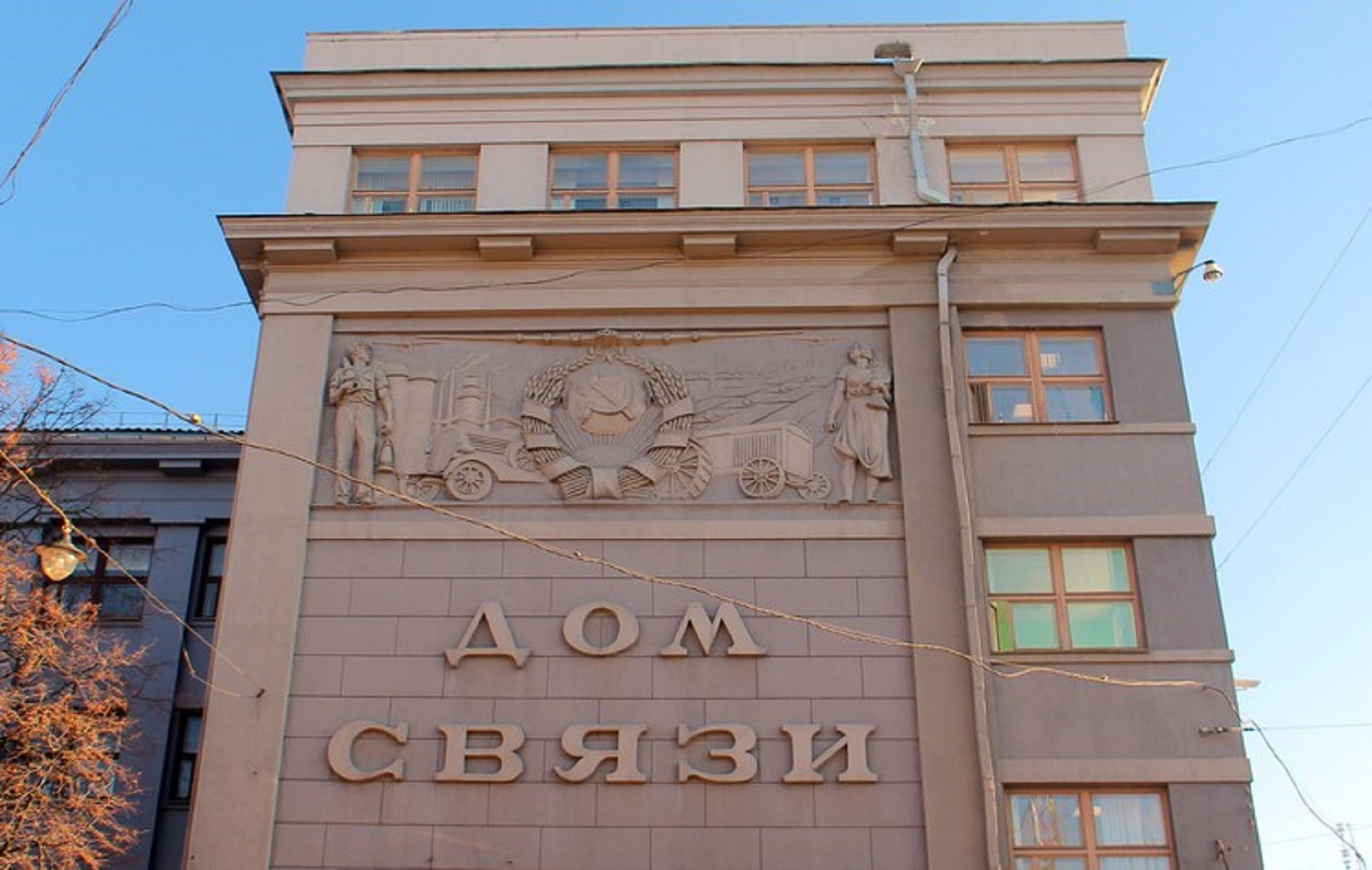 - Дом связи —доминанта площади и отличный образец авангарда, скрывающий на своем фасаде историю, в которой до сих пор не поставлена точка;