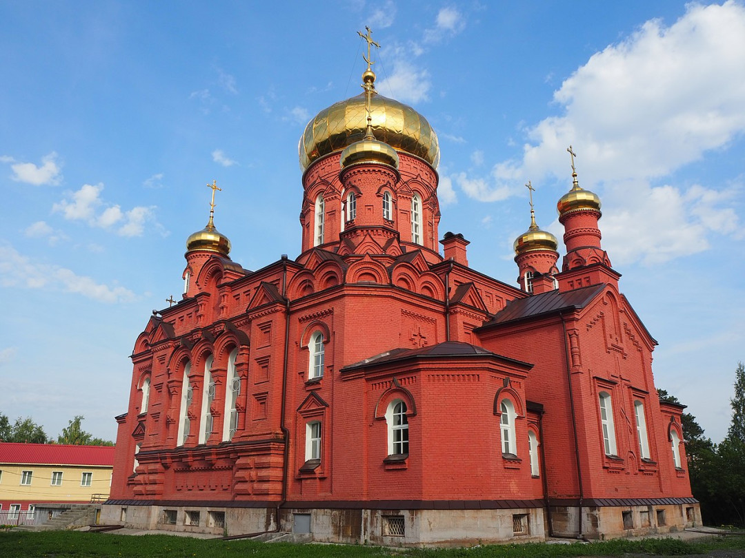 Первый камень в фундамент церкви Сергия Радонежского заложил в 2000 году Патриарх Московский и всея Руси Алексий II, а первую литургию отслужили в 2004-м, когда поднялись к небу золотые кресты на куполах и поплыл над городом колокольный звон. Церковь выдержана в русско-византийском стиле с добавлением классических элементов. Крестово-купольный храм на высоком цоколе способен одновременно вместить до 800 человек. Вытянутый вверх четверик венчает пятиглавие, шестой купол установлен на колокольне, седьмой — на полукруглой апсиде. Тимпаны с килевидным завершением над входами в церковь покрывает роспись. Иконостас выполнен вятскими мастерами, росписи — московскими художниками.