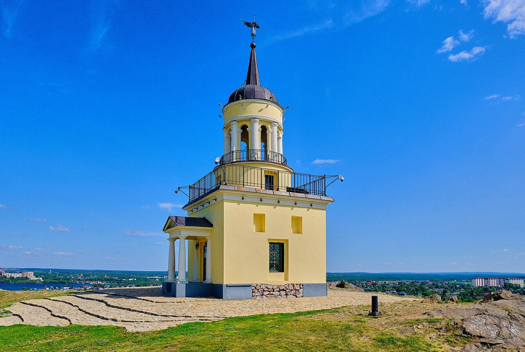 В XVIII веке на макушке Лисьей горы построили деревянную башню, служившую дозорным пунктом и одновременно пожарной каланчой. В 1818 году на её месте выросло каменное сооружение в классическом стиле с четырьмя портиками и ротондой на крыше. В ней висел бронзовый колокол, который оповещал горожан о пожарах. В 1830-х годах рядом с бывшей сторожевой башней построили павильон — любительскую обсерваторию для наблюдения за кометой Галлея, а в конце столетия оборудовали метеорологическую станцию. В 1957 году Лисьегорская башня превратилась в телевизионный ретрансляционный центр. Но время неумолимо — здание стало понемногу разрушаться, и в 1960-х годах его закрыли на реконструкцию.
