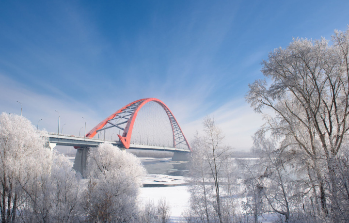 Возведение Бугринского моста, третьего по счёту в Новосибирске, завершилось в 2014 году. Архитектурное решение сооружения аналогично мостам Лупу в Китае и Живописному в Москве. Протяжённость автомобильного моста – 2 км, высота арки – 70 метров. Эффектное зрелище предстает перед зрителями, когда в тёмное время суток мост ярко освещается многочисленными фонарями и прожекторами.