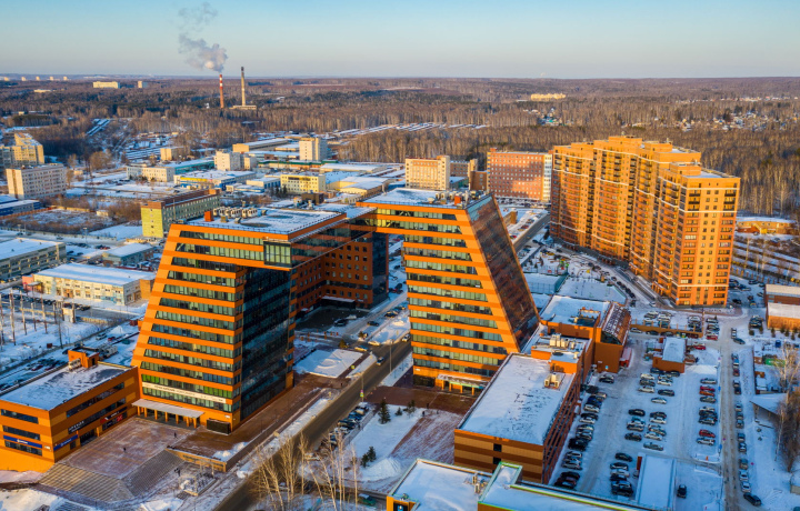 Сегодня я, была на пешеходной экскурсии в Академгородке. Отличный экскурсовод Александр, в прошлом журналист, очень увлекательно рассказал о нашем чудесном оазисе науки и природы. Город-лес, вернее, город в лесу, встроенный в естественную среду обитания. Начали экскурсию с Технопарка. Два изогнутых здания, соединенные переходом со стеклянным полом. Люди прозвали эти здания гуси, из за их конфигурации. В технопарке находятся бизнес-инкубаторы, коворкинг для стартапов.