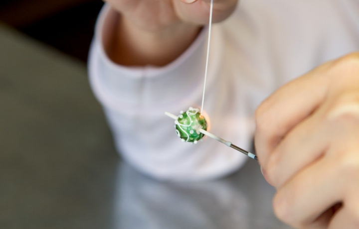 Уникальный опыт. Вы расплавите стекло при 1200°C и создадите кулон со Вселенной внутри — украшение, которое невозможно купить или повторить. У вас получится три бусины: тестовая ученическая, усложнённая космическая и свободная фантазийная. Опыт показывает, что сначала новички осваивают технологию, а на третий раз уже могут экспериментировать.