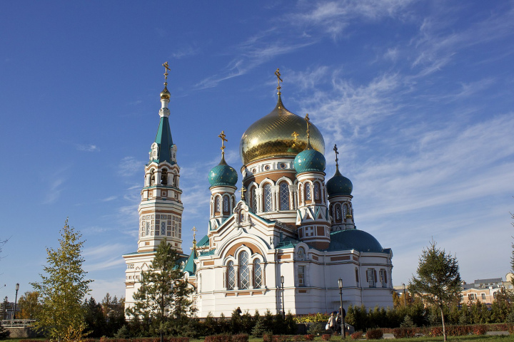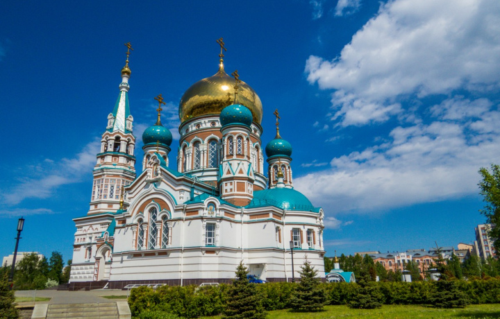 Кафедральный собор Успения Божией Матери — восстановленное здание некогда разрушенной христианской святыни. Первый Успенский собор был возведён в конце XIX века. Пятиглавый храм строился по проекту архитектора Эрнеста Вирриха на месте городской рощи, расположенной близ улицы Тарской. Первый камень в основание собора заложил цесаревич Николай Александрович, путешествовавший в то время по Сибири.