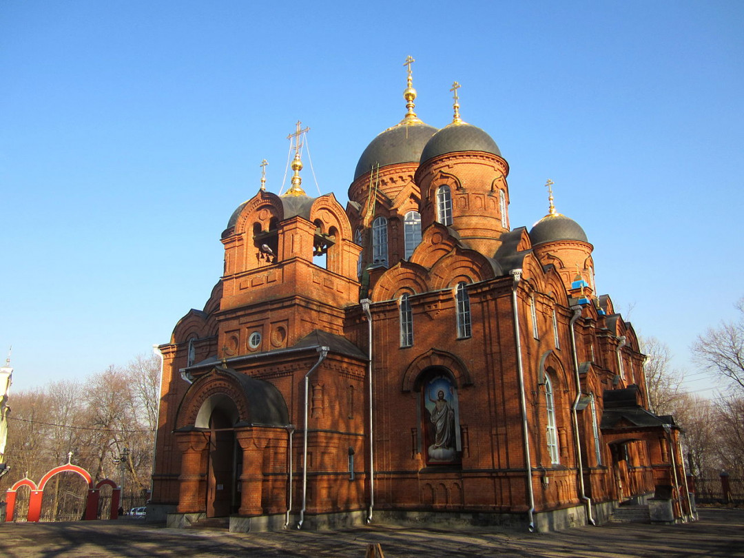 Величавый, выполненный в псевдорусском стиле Успенский кафедральный собор возвышается над вековыми деревьями Мироносицкого кладбища. Храм был построен в 1905 году на месте сгоревшей церкви Святых Жён Мироносиц. После революции собор не тронули. Сначала его отдали обновленцам, потом закрыли, передав церковное имущество в краеведческий музей. Службы возобновились сразу после войны. До наших дней Успенский собор сохранился в первозданном виде.