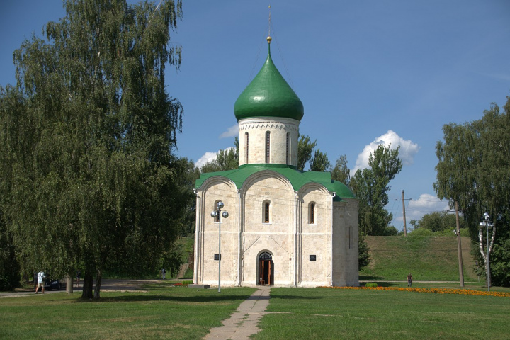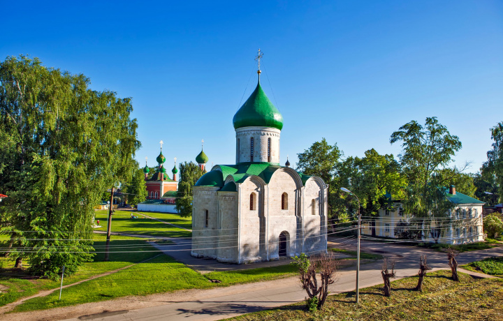 Ровесник Переславля-Залесского Спасо-Преображенский собор построен по инициативе князя Юрия Долгорукого в 1152 году. Жемчужина древнего храмового зодчества возвышается над Красной площадью. Её архитектура предельно проста, как и у всех раннехристианских храмов. Белоснежный барабан, украшенный поребриком и городчатым поясом, венчает зелёный купол. Собор ценен тем, что сохранил свой первозданный облик.