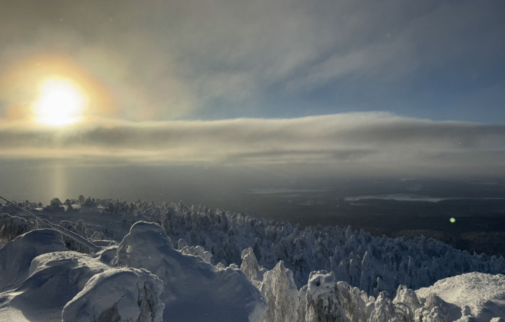 • Зимний вариант экскурсии включает в себя снегоходное путешествие на одну или две горы — Полюд и Ветлан.