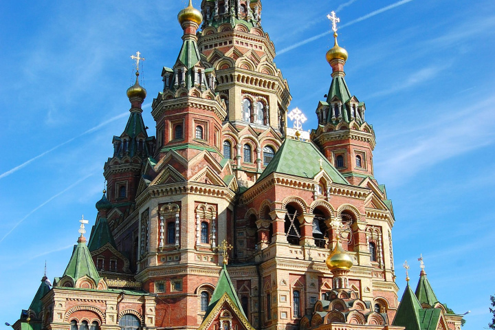 Московский собор Василия Блаженного (XVI век) — визитная карточка России, яркий образец шатрового стиля, распространённого в эпоху Ивана Грозного. В стране есть ещё два храма, которые сложной планировкой, радостным многоцветьем и обилием украшений напоминают столичный храм Покрова на рву — это Спас-на-Крови в Санкт-Петербурге и Собор святых апостолов Петра и Павла в Петергофе. Оба они связаны с именем Александра III.