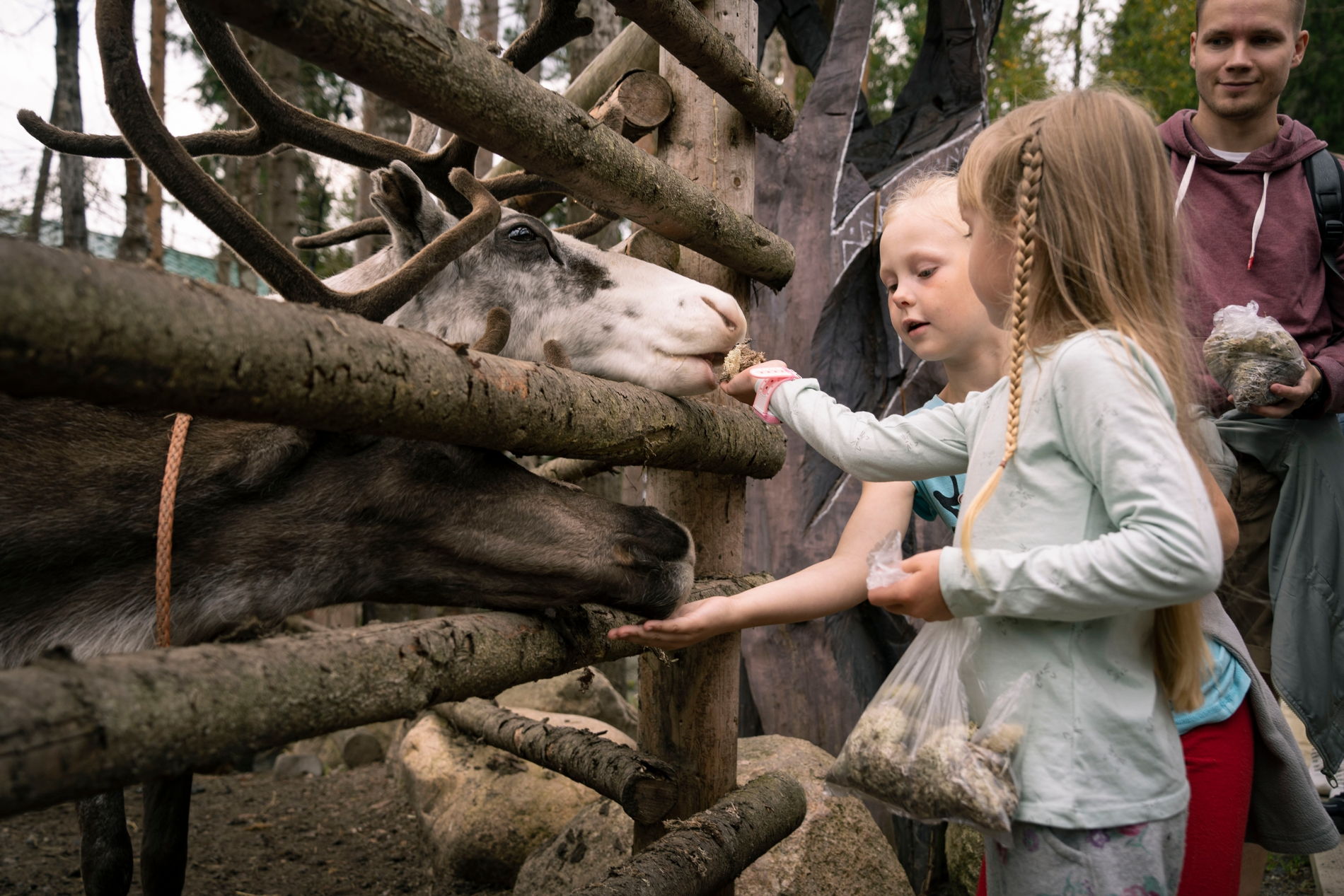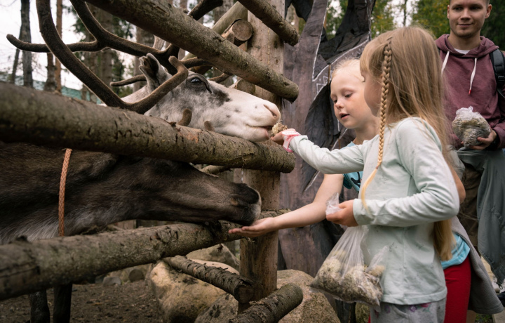 Во второй, загородной части экскурсии нас ждёт настоящая северная сказка. Мы отправимся в вотчину Талви Укко — карельского Дедушки Мороза, спрятанную в еловом лесу. Здесь вы побываете в питомнике ездовых собак и на ферме северных оленей: пообщаетесь с дружелюбными хаски и маламутами, покормите оленей ягелем и сделаете тёплые фотографии с пушистыми обитателями резиденции. Мы поговорим о саамских обрядах, северных традициях и животном мире Карелии.