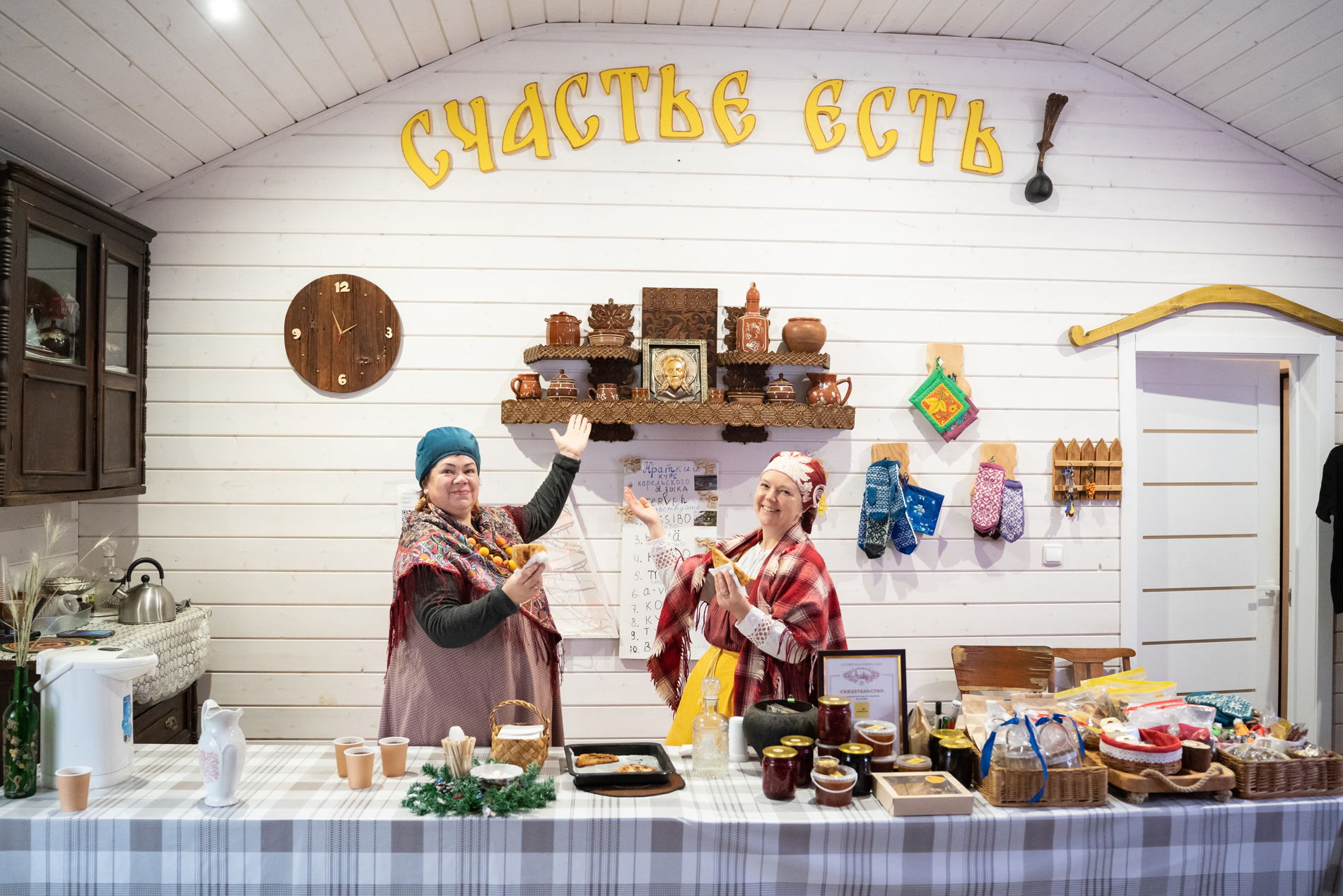 Затем вас ждёт музыкальная программа в деревенской филармонии, где познакомят со старинными песнями и музыкальными инструментами карелов. В завершение программы вы сможете насладиться ароматным чаем из самовара на шишках с карельской выпечкой. Никто не уедет из этой деревни грустным!