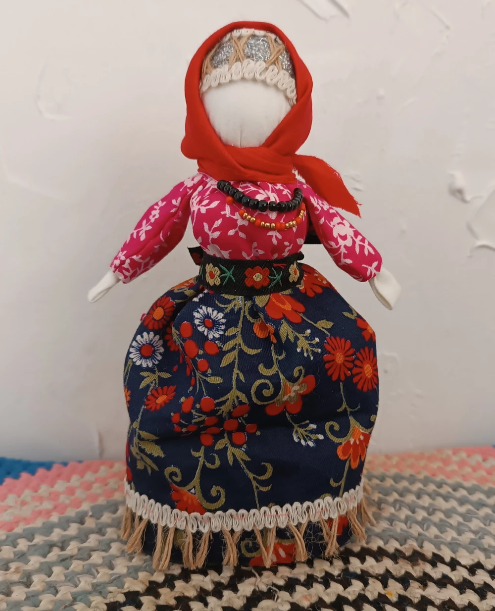 Я покажу, как сформировать «тулово» куклы и нарядить её в традиционную русскую одежду — юбку, фартук и платок.