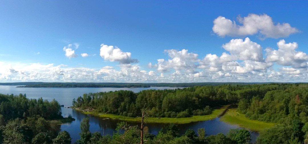Залив Лехмалахти в западной части Ладоги — одно из красивейших мест Карельского перешейка. Здесь проходит граница между Ленинградской областью и Карелией. К северу от залива начинается национальный парк «Карельские шхеры», но живописные острова и фьорды Лехмалахти не входят в территорию парка и доступны для свободного посещения. Вдоль побережья залива проложена Большая Ладожская тропа — маршрут длиной 14–15 км по карельской тайге, болотам, валунам с выходом на гранитные берега к соснам, растущим на камнях, скалам и водному простору. Опорные точки маршрута — скалистый мыс, бухта Туристов, старинные каменоломни. В XVIII веке каторжане добывали здесь гранит, которым вымощены набережные Невы. С плато от каменоломен открывается наилучший вид на шхеры залива Лехмалахти. На Большую Ладожскую тропу можно попасть рейсовым автобусом из Приозёрска, ехать надо до остановки «Красный треугольник».