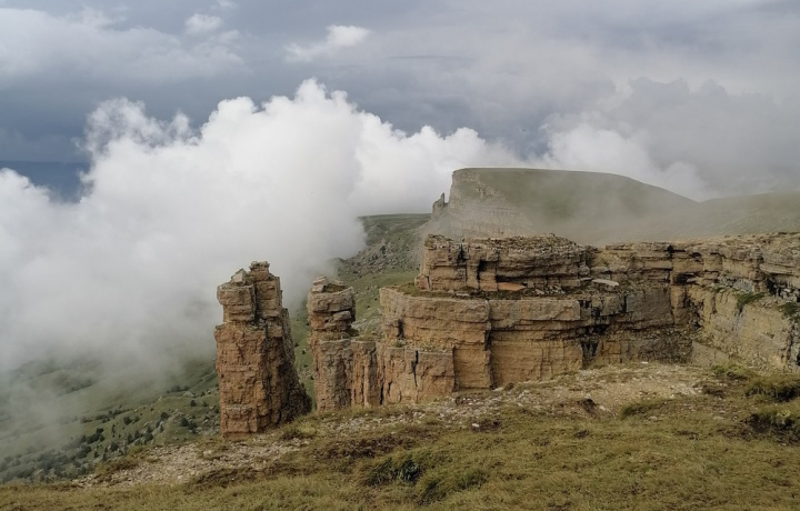 Наконец, вы окажетесь у цели — на плато, которое называют российским Гранд-Каньоном. Это часть скалистого хребта Большого Кавказа с диковинными скалами-монахами и скалой-арфой, с природным амфитеатром и мостиком над пропастью. В пасмурную погоду здесь также можно увидеть «броккенского призрака» — это явление, когда тень наблюдателя отражается на облаках или в тумане. Часто мы встречаем обитателей этих краёв: орланов, белоголовых ястребов, зайцев и лис.