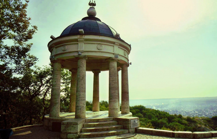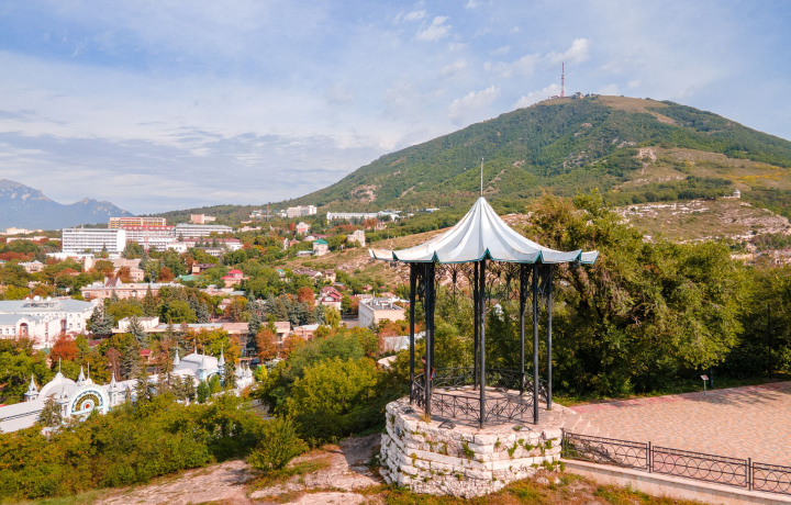 После посещения пещеры вы отправитесь в ещё одно популярное пятигорское местечко — беседку «Эолова арфа». С высоты вы сможете насладиться панорамной Пятигорска, увидите ближайшие к городу поселки и, конечно же, живописный Кавказский хребет.