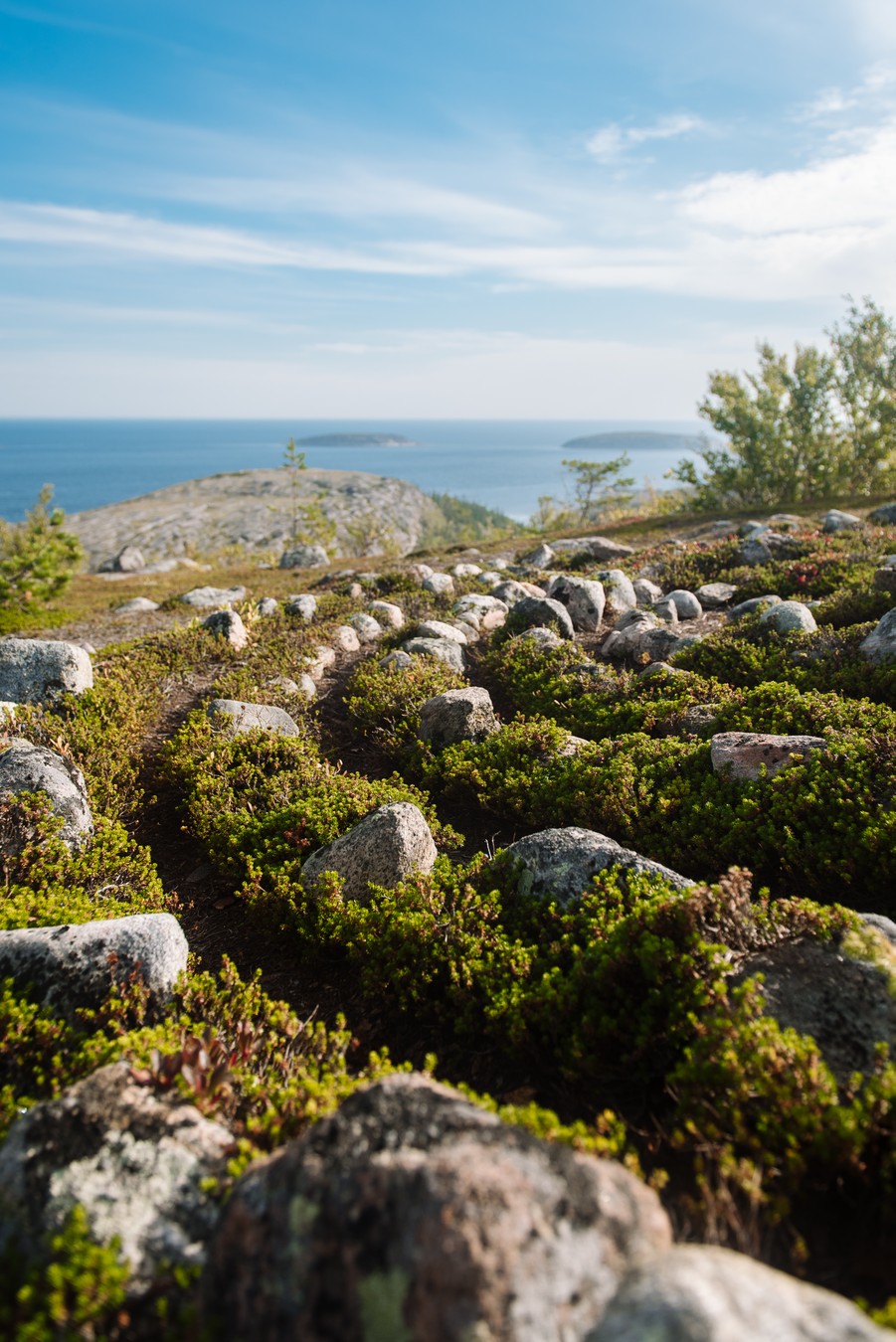 Немецкий Кузов — самый высокий остров архипелага Кузова и один из самых загадочных. Здесь сохранились саамские сейды и каменные лабиринты, тут гнездятся редкие птицы и растут арктические растения — и отсюда в ясную погоду видно на 40–50 километров вокруг. Эта программа интересна и как самостоятельное путешествие, и как остановка по пути на Соловецкие острова.