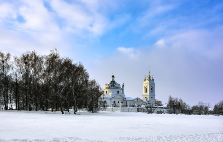 Успенский собор был построен на территории Рязанского кремля в XV веке, когда старый Христорождественский храм стал тесен для прихожан. Красный фасад разделён белыми пилястрами, а проёмы окон украшены белоснежной каменной резьбой. Стиль собора относят к нарышкинскому барокко. Храм не избежал разрушений в годы советской власти. Восстановление началось в 1992 году.