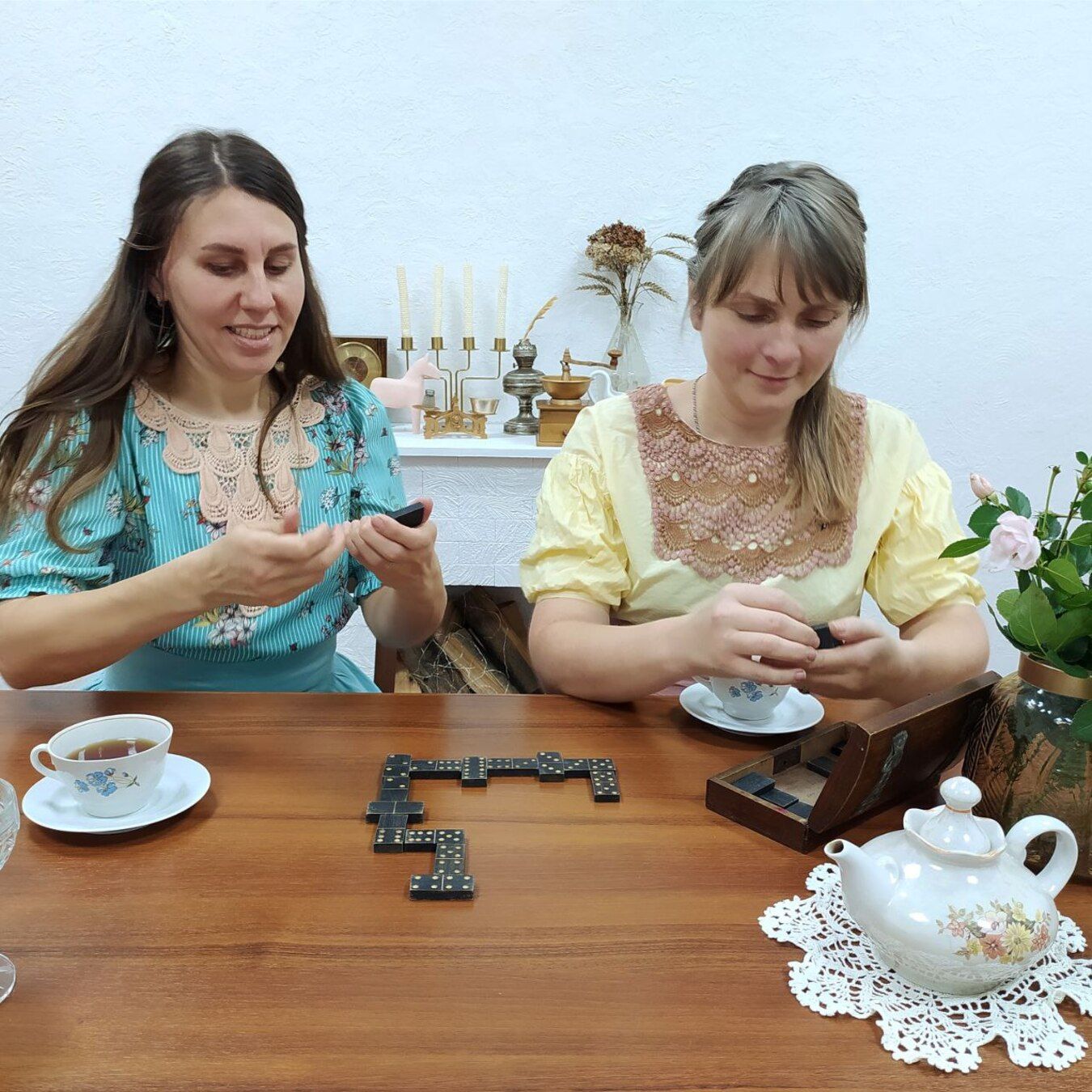 • Во время чаепития вас ждёт сюрприз — игра в старинное домино, так популярное среди дворян.