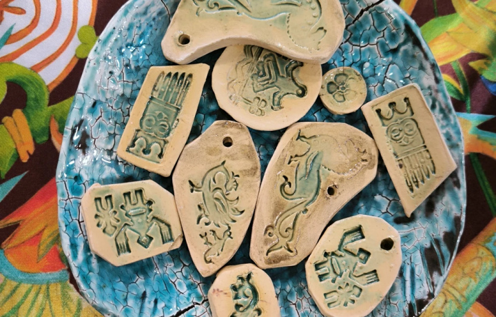 В музее вы рассмотрите макет, где изображен быт затопленного города — все воссоздано по документам, старинным снимкам, картинам и воспоминаниям старожилов. Посмотрите видео, посвященное мологскому наследию. И конечно, посетите керамическую мастерскую, где изготовите изразцы и обереги в стиле традиционных росписей мологского края. А я расскажу о видах и символике орнаментов, которые мы встретили на найденных изделиях: цветочном узоре, обозначающем мир предков, сакральных мифологических существах и других деталях народных промыслов.