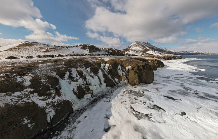 В этом путешествии вы насладитесь природой восточного побережья острова, припаями Охотского моря и бескрайними ледяными просторами. Сначала вы проедете 134 километра на машине, чтобы оказаться в бухте Тихая, а затем преодолеете ещё пять километров пешком на пути к ледопадам — и точно не пожалеете!