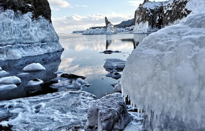 Мыс Великан считают самым живописным уголком сахалинского побережья — и не зря: это памятник природы с уникальным рельефом, невероятными пейзажами и богатой фауной. Вас ждут суровая красота океана, скальные останцы фантастических форм, шумные птичьи базары и уютные бухты, к которым спускаются темнохвойные леса Тонино-Анивского хребта.