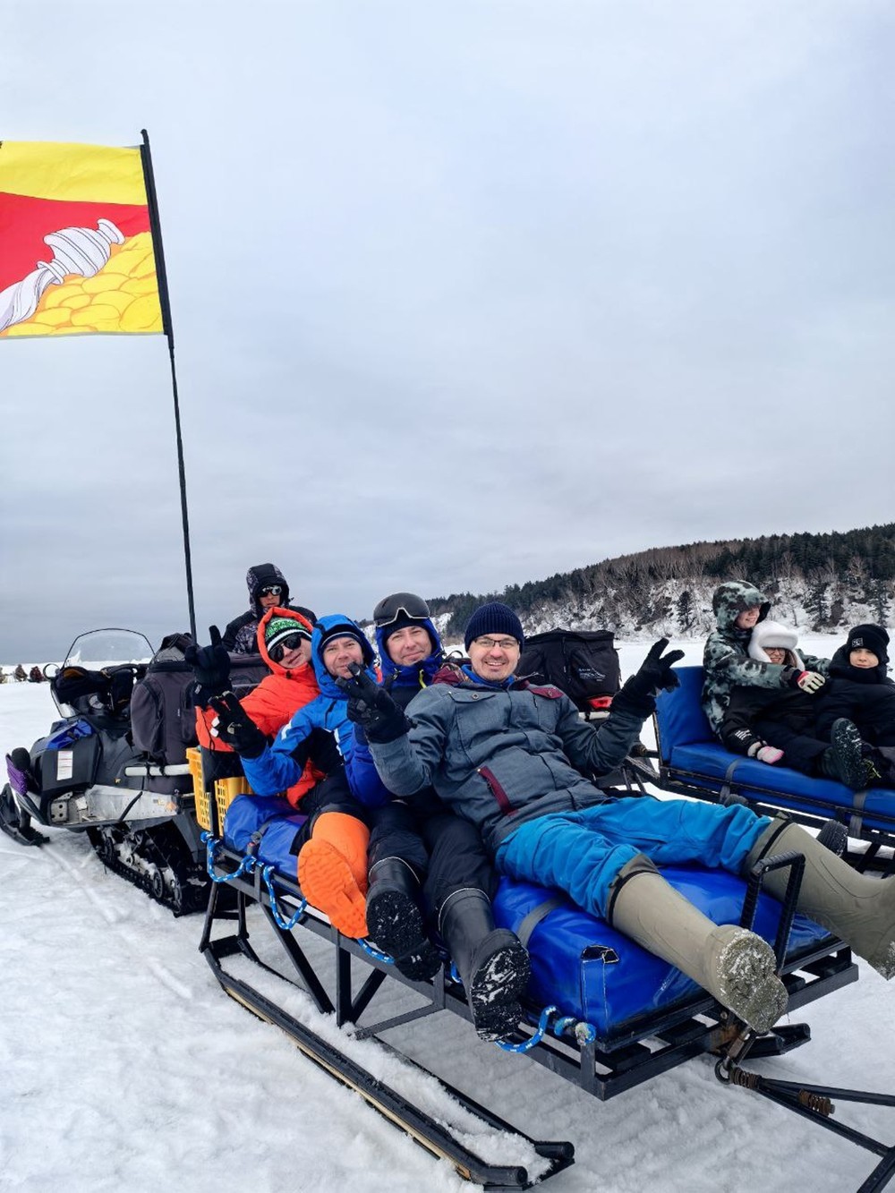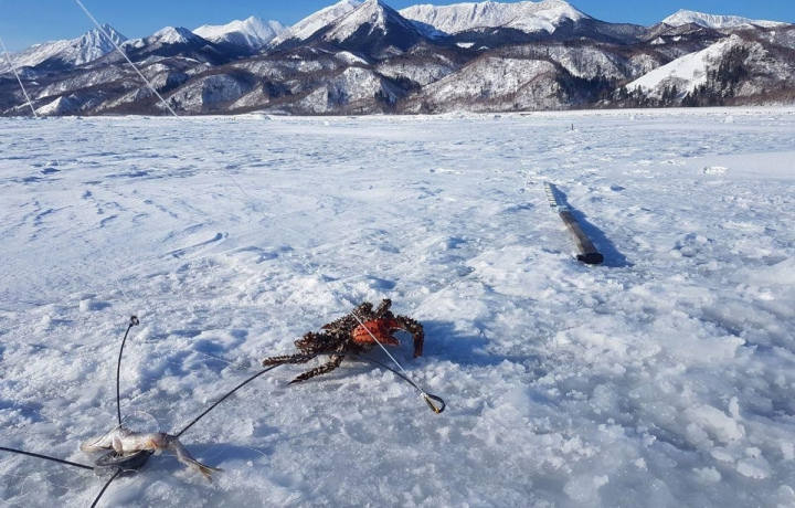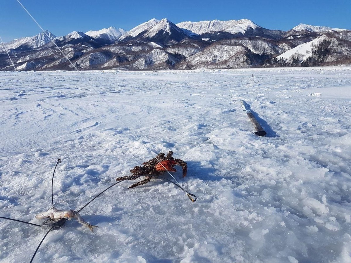 9:30 — заброска на снегоходе к месту лова (с. Охотское, с. Стародубское — Охотское море)